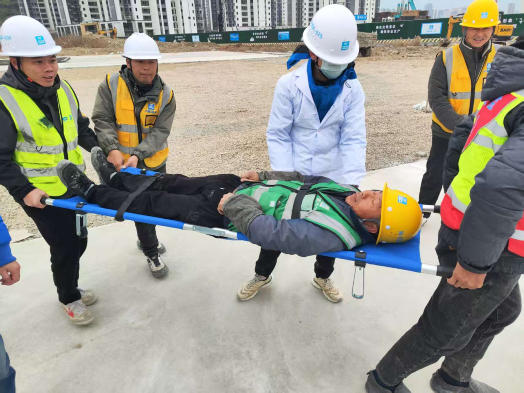 演练模拟了因连续降雨导致局部边坡土体松动,突发坍塌,造成作业人员受伤的场景。项目经理指挥抢险救援组第一时间携带生命探测仪等设备进入现场,定位被埋人员,清理土体,避免二次坍塌;疏导警戒组立即对现场拉设警戒线,疏散无关人员;医疗救护组随后到达,对轻伤人员进行止血包扎并转运至救护车;技术分析组负责分析坍塌原因,提出支护加固方案;后勤保障组调运应急物资,保障通信畅通。各小组紧密配合,迅速、有序地开展救援。